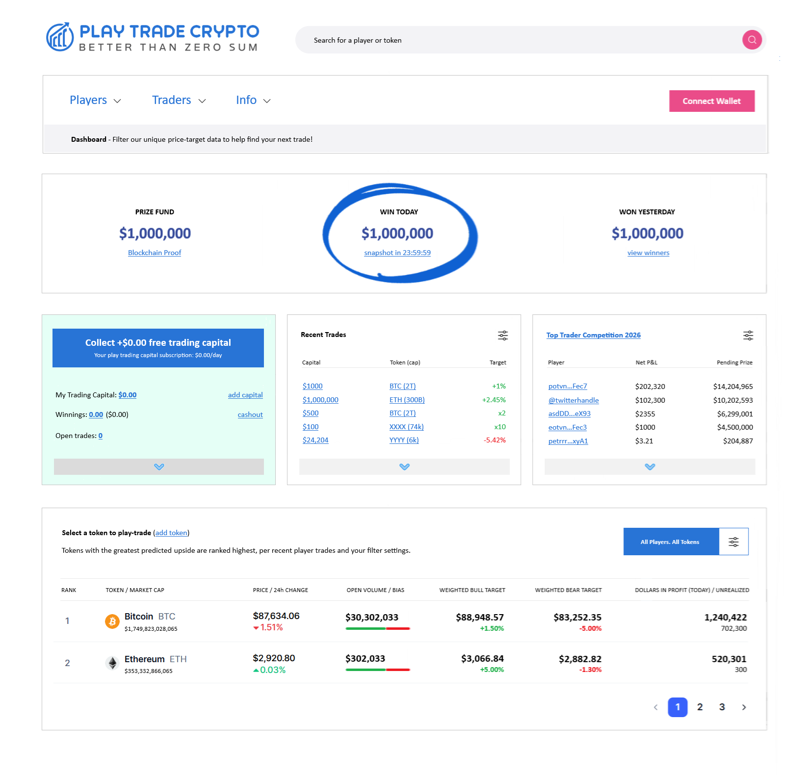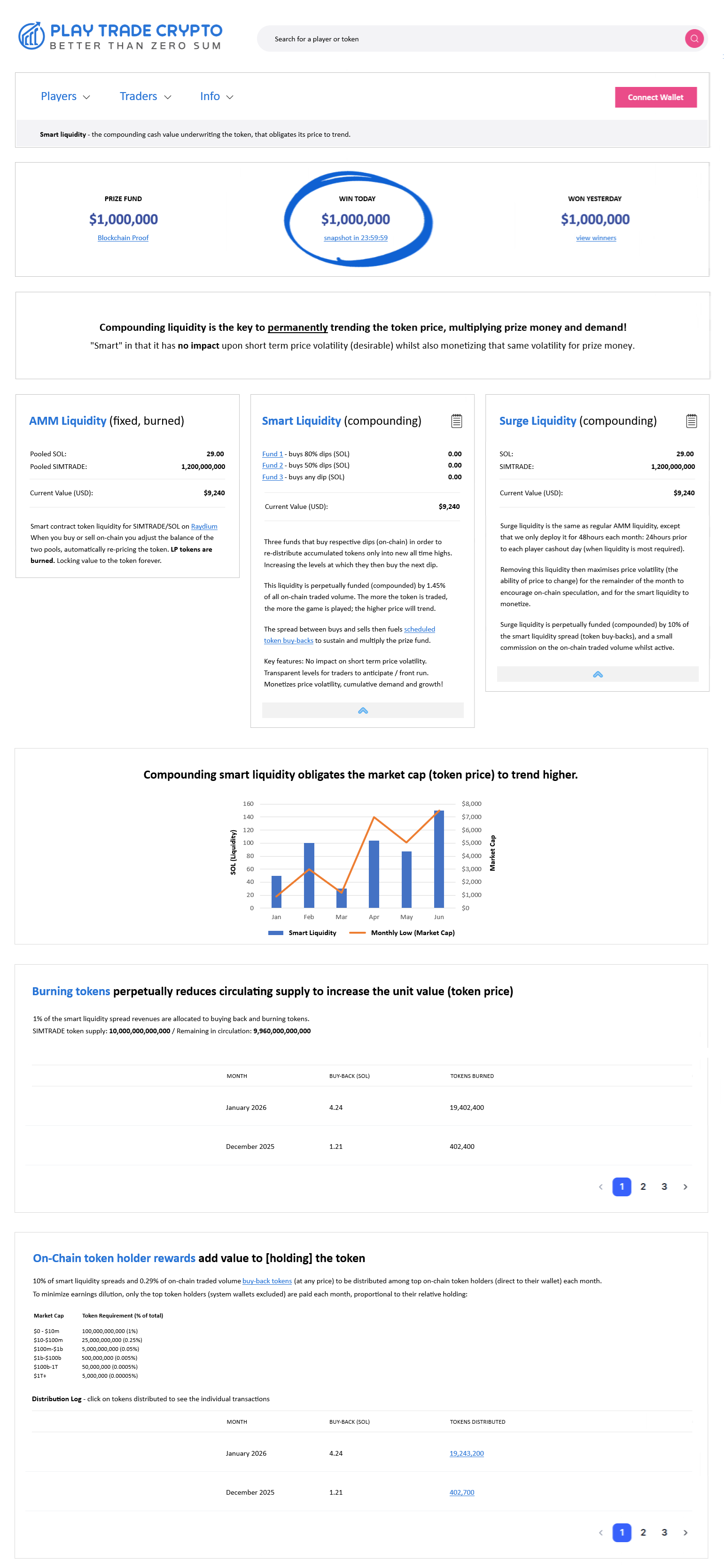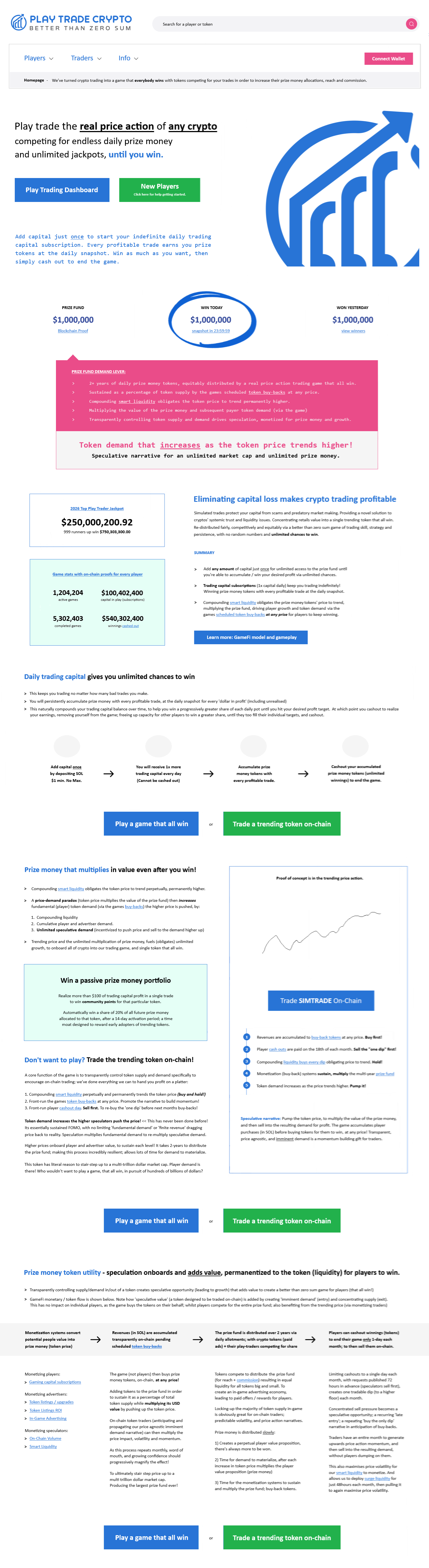 Generating and sustaining unlimited prize money using a token is the clever part: We should generate the largest prize fund in history, making this competitive with 'real trading' even for top traders.